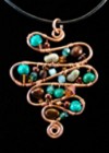 Love the warmth of copper and the coolness of turquoise? Join Kat in this new wirework class using copper wire, turquoise beads, Swarovski crystal, seed beads, pearls, glass, etc. Hang it from silk or leather cording. Get a jump start on your summer jewelry. Sign up early, space is limited to 6 students. Age 18 & up. 2 1/2 hours. $30.00 |